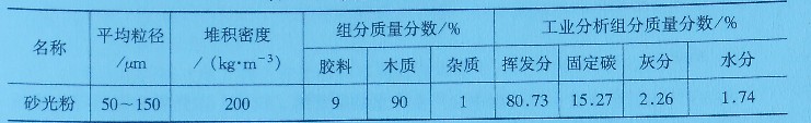 (1)砂光粉的組成。砂光粉組成與工業(yè)分析,如表7-1所示。