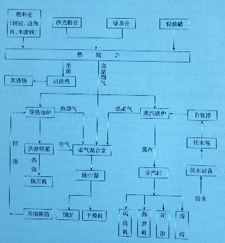 (1)砂光粉燃燒系統(tǒng):砂光粉料倉(cāng)一定量螺旋一輸送風(fēng)機(jī)一止回安全閥一砂光粉燃燒裝置一燃燒爐。