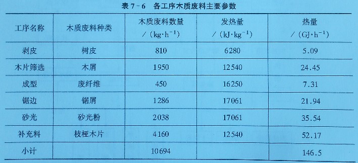 鍋爐房的燃料是利用生產(chǎn)過(guò)程中產(chǎn)生的木廢料及補(bǔ)充的枝椏木片,其參數(shù)如表7-6 所示。
