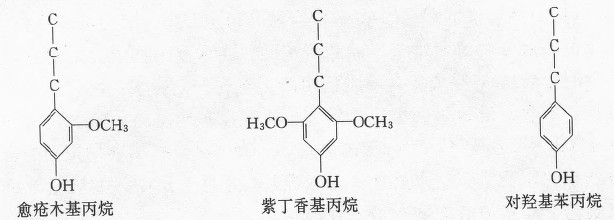 木質素為纖維素的伴生物,在木質纖維中與半纖維素共同組成結殼物質,存在于胞間層與細胞壁上微纖維之間。木質素的一部分與半纖維素之間存在化學聯接。木質素是一群物質的總稱,各種材種的化學結構均有不同之處,就是同一種植物中各類細胞中的木質素結構也有差異。至今,還沒有一個方法能把木質素從植物的組織中完整地、沒有任何變化地分離出來。因此,木質素結構的分析和性質研究異常困難。一般認為,木質素是具有芳香族特性的非結晶的、具有三度空間結構的高聚物。其基本結構是苯基丙烷單元彼此以醚鍵(-C-O—c一)和碳一碳鍵(一C-C一)聯結起來。木質素有如下三種結構單元;愈瘡木基丙烷、紫丁香基丙烷和對羥基苯丙烷。