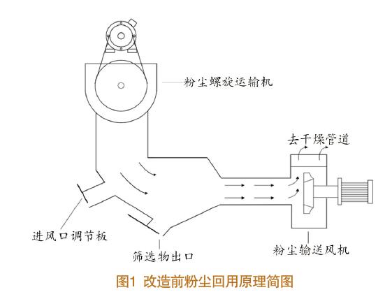 根據實際情況,為達到篩選粉塵中砂粒的目的,在砂光粉塵螺旋運輸機后進行砂光粉塵篩選系統改造,改造后原理簡圖見圖2。